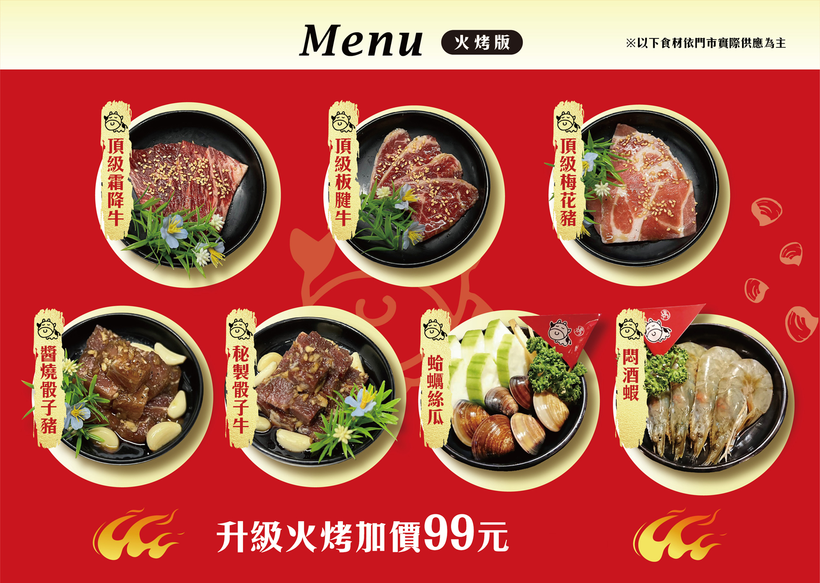 3.升級燒烤,須來電預訂,指定燒烤桌型